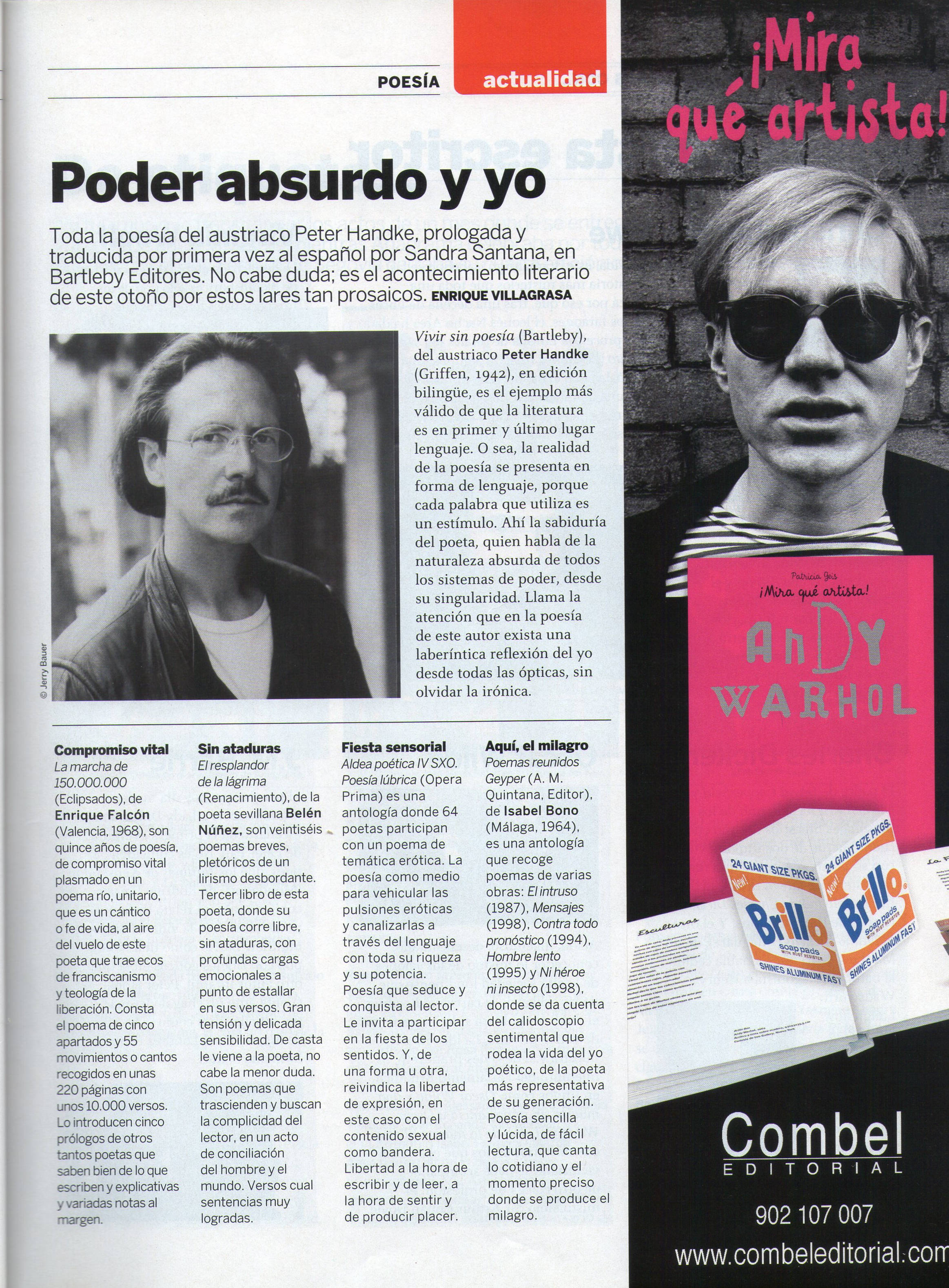 He participado en revistas como Extramuros, Renacimiento, Turia, Triana, Piedra del Molino, Cuadernos de Roldán, Numenor, La otra orilla, El ático de los gatos.